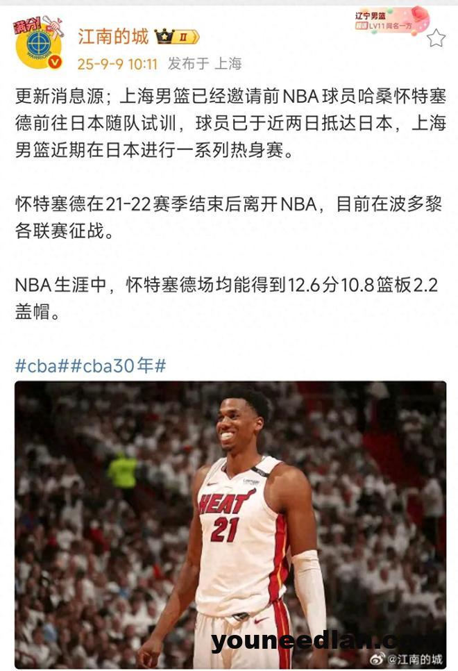 终于有上海男篮大外援的消息了!据CBA著名经纪人“江南的城”透露,上海男篮签下大外援怀特塞德,怀特塞德将去日本与上海男篮合。
