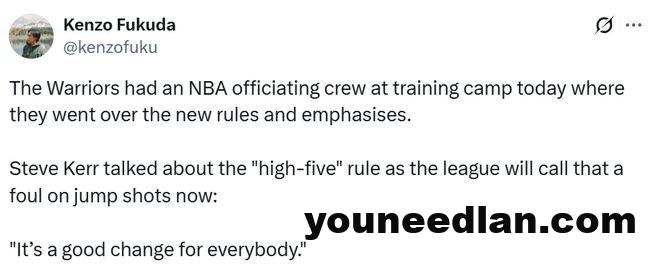 不过,克劳福德最重要的一件事,还是告诉球员们本赛季针对 “击掌防守”的判罚规则有调整,这将被视为犯规,目的是保护投篮球员。多家媒体转发了科尔的言论,认为库里有望从中受益。甚至有媒体认为,库里的罚球次数在新赛季有望翻倍。