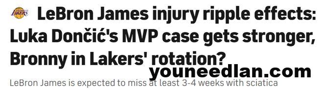 詹姆斯因伤至少缺席3-4周,这对湖人有什么影响?北京时间10月12日,知名美媒CBS给出了相关解析,他们认为东契奇当选MVP的概率提升,而布朗尼的上场时间也有望增加。