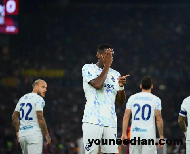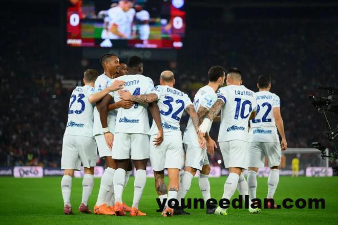 比赛开打后,国米立马取得梦幻开局;第6分钟,巴雷拉中圈附近直接起高球送到前场,罗马防线造越位失败,博尼抽射近角得手,1:0!夏窗以2300万欧元加盟后,博尼已经逐渐成为国米重要轮换角色,9场比赛3场3助攻也已经是张不错的答卷;而且这是国米对阵罗马打进的第300球,蓝黑军团也就此成为了意甲历史上(自1929-30赛季以来)第一支能够面对单一对手打进300粒进球的球队。