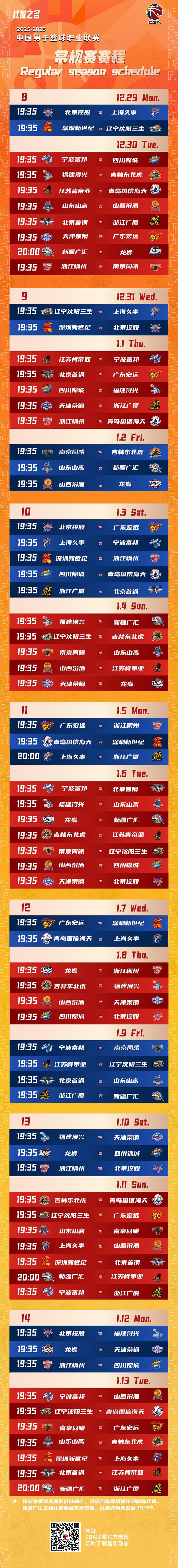 北京时间10月20日,CBA官方发布公告,宣布新赛季将于12月12日开赛,次年4月24日收官。 CBA2025-26赛季常规赛共42轮,揭幕战将于12月12日19:35开打,比赛为广厦主场迎战山西(上赛季常规赛前二)。 CBA新赛季常规赛赛程 开云(中国)新闻中心 开云(中国)Kaiyun·官方网站 - 登录入口新闻中心 22届十人续约:班凯罗雷霆双少顶薪 火箭探花价廉杨瀚森队友在列 李月汝:由于目前伤病原因,我将不得不退出此次全运会的比赛