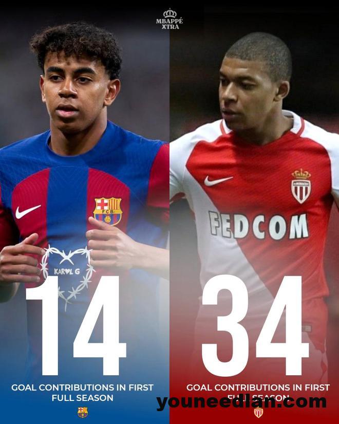 现如今,两人在西甲直接对话,上赛季虽然皇马四大皆空,但是姆巴佩的个人数据冠绝西甲,手握西甲金靴与欧洲金靴,表现也足够出色了吧,本赛季在银河战舰多线作战的情况下,早早就进入了火爆状态,各项赛事出战11场比赛,轰入15球,领跑西甲与欧冠射手榜,他这台进球机器,场均进球率超过1球,效率那是相当的恐怖。