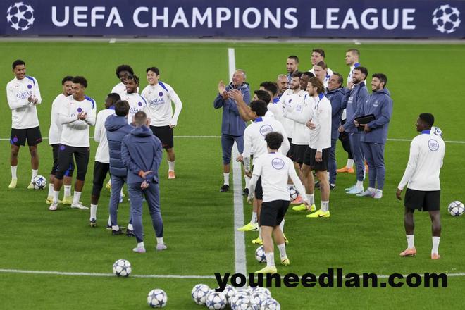 10月20日,巴黎圣日耳曼队主帅恩里克(中)带队训练。新华社