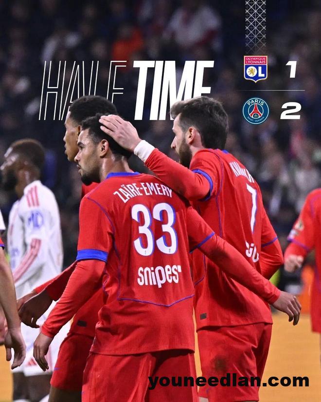 上半场比赛结束,凭借埃梅里和K7度进球,我们暂时在客场2-1领先里昂。