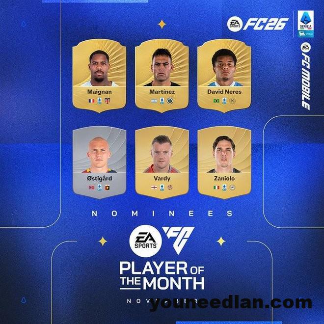北京时间12月4日,意甲11月最佳球员候选名单公布,这6名球员为迈尼昂、劳塔罗、内雷斯、厄斯蒂高、瓦尔迪、扎尼奥洛。