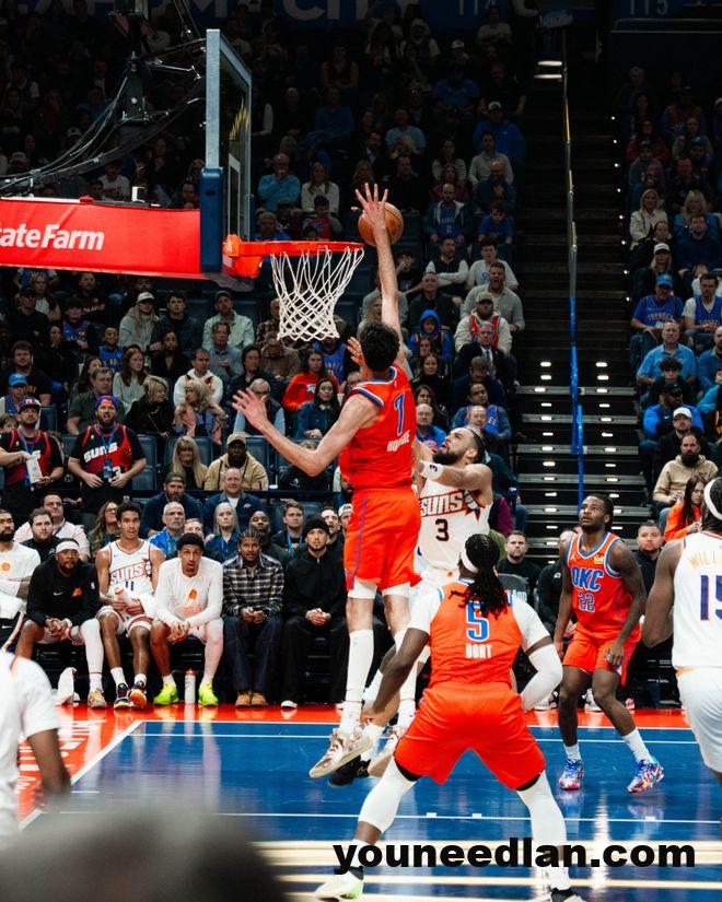 太阳队的布克继续缺席。雷霆队在主场先发制人,华莱士连拿5分,亚历山大贡献4分,他们以11-2领先。布鲁克斯和阿伦轮流得分阻止差距拉大,霍姆格伦还击5分,雷霆队牢牢保持领先。两队拉锯几个回合,太阳队命中率再次下降,米切尔、华莱士和卡鲁索合取10分,首节还有2分10秒时雷霆队以36-16领先20分。古德温三分回应,太阳队以7-2的反击波结束首节,他们以23-38落后。