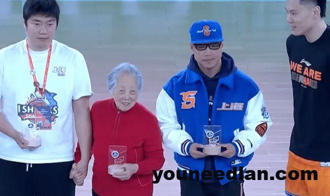 王哲林作为现任队长获赠象征上海男篮精神的金色篮球。