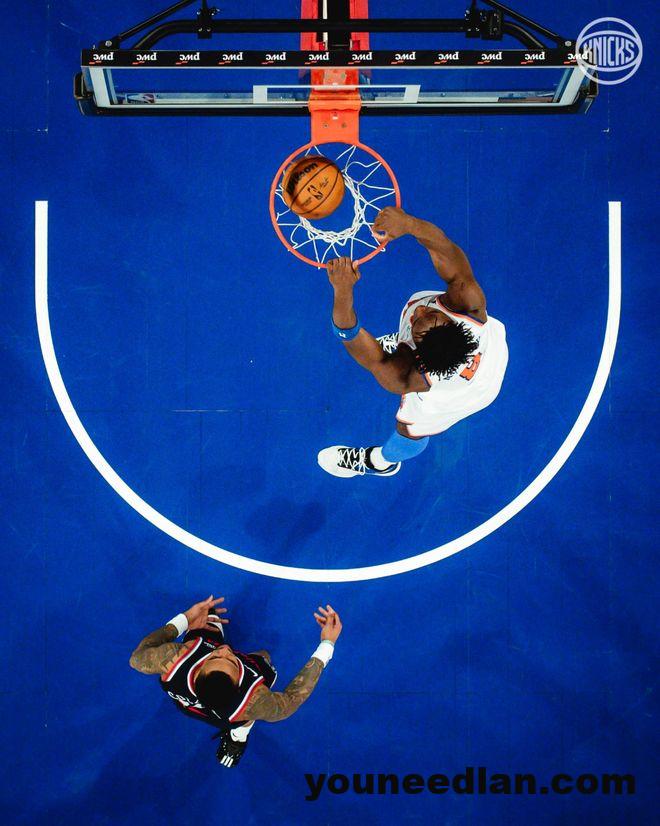 尼克斯队首发阵容:布伦森、麦克布莱德、布里奇斯、阿奴诺比、唐斯