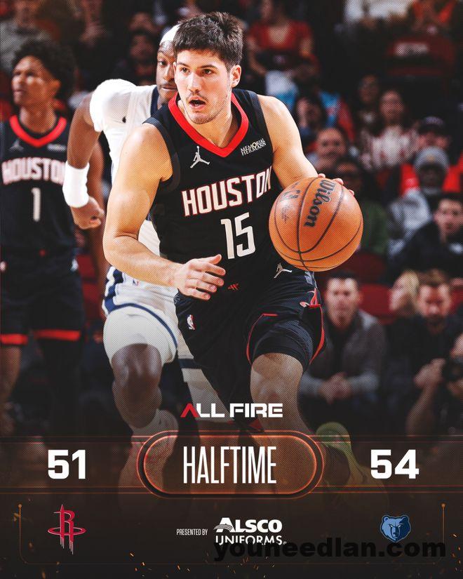 灰熊队的杰克逊上半场得到11分,威尔斯和G-杰克逊各得到10分;火箭队的申京得到14分,杜兰特得到12分和7个篮板,伊森得到11分和4个篮板。