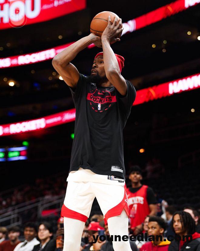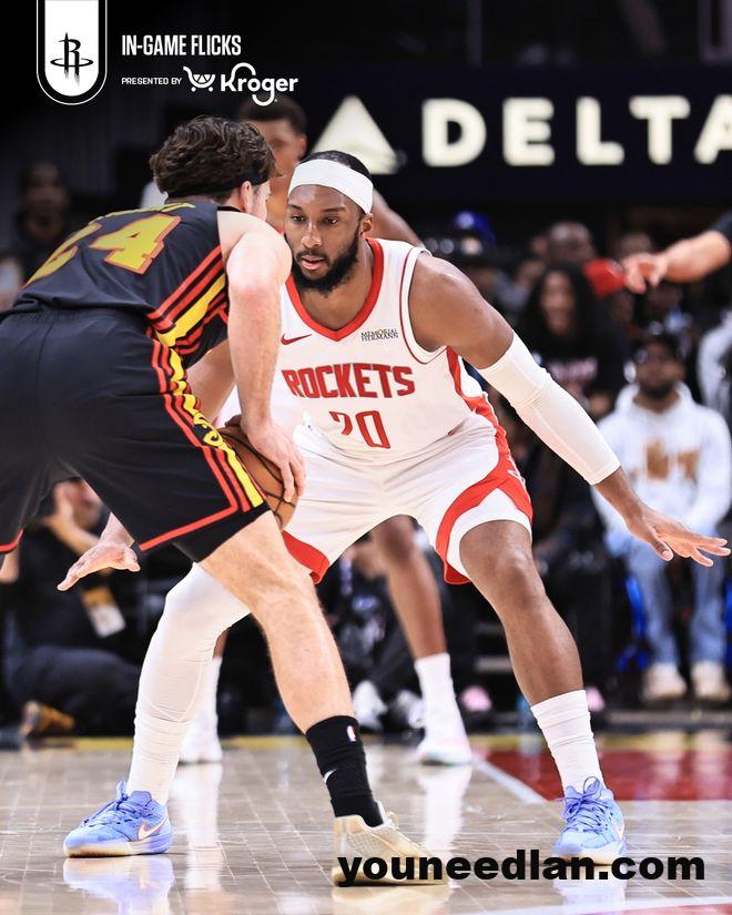 火箭队的杜兰特得到31分、5个篮板和4次助攻,史密斯得到14分和8个篮板,谢泼德得到13分、4个篮板和4次助攻,奥科吉得到10分和10个篮板,卡佩拉得到10分和7个篮板,申京得到9分和13个篮板,汤普森得到9分和7个篮板。老鹰队的麦科勒姆得到23分和5个篮板,沃克得到20分和5个篮板,基斯珀特得到17分。