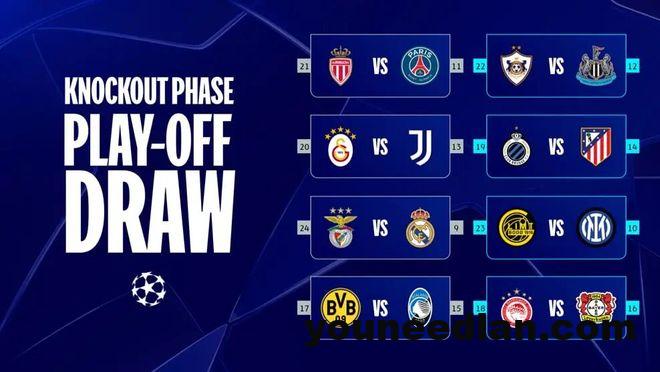 附加赛抽签其他对阵,大巴黎和去年一样上演“法国内战”,对手是近况近乎崩盘的摩纳哥。国际米兰和纽卡都要“远征”,前者2月要进入北极圈接受博德闪耀和严寒的挑战,后者则要飞行超过6000公里前往阿塞拜疆挑战另一支黑马球队卡拉巴赫。尤文图斯要到伊斯坦布尔的“地狱主场”对阵加拉塔萨雷,多特蒙德与亚特兰大则是五大联赛球队间的唯一对抗。