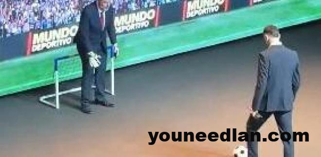 霍安-加西亚从英格列斯百货加泰罗尼亚区公关总监伊娃-弗兰克斯手中接过了奖杯,随后还上演了一幕别开生面的趣味环节。颁奖典礼的舞台上出现了一座标准尺寸的虚拟球门,在主持人霍尔迪-巴斯蒂的提议下,这座球门被立刻换成了迷你尺寸,他还向霍安-加西亚发起挑战,让这位门将站上点球点主罚,而自己则临时客串门将。