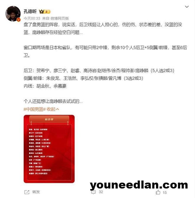 “集训名单里没看到孙铭徽,他最近状态回升明显啊!教练组这选择有点保守了吧?”