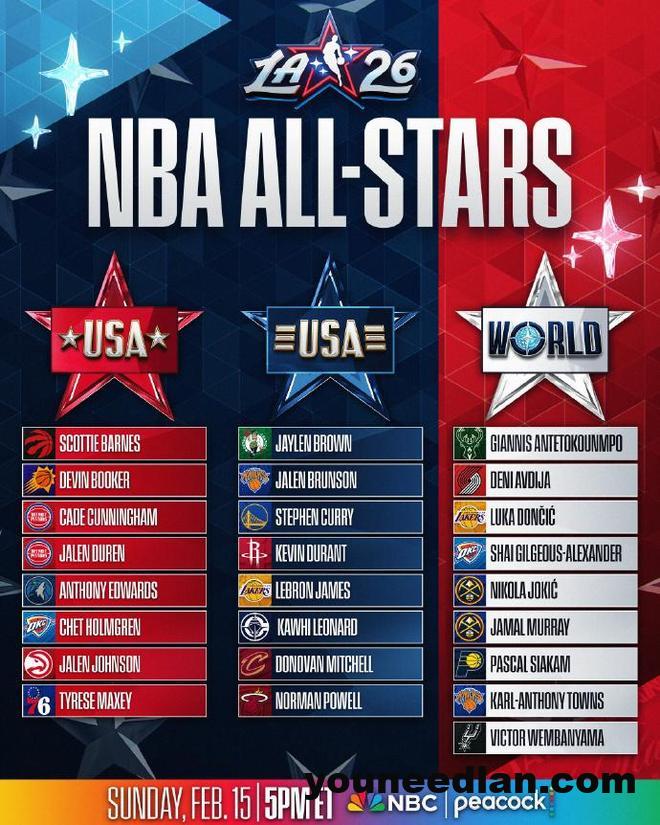 原本詹杜库三位老牌超巨,被期待在全明星赛再度合体,但由于如今库里因伤缺席,让詹杜库合体的愿望再度落空。