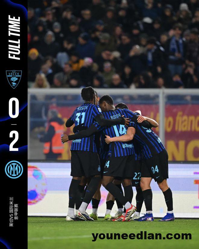 国际米兰延续着本赛季意甲虐菜大师风范,客场2比0击败莱切豪取意甲7连胜,蓝黑军团目前在多赛一轮的情况下,在意甲积分榜上建立起10分的领先优势。