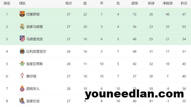 截至目前,27轮过后,巴萨22胜1平4负拿到67分,在积分榜上以4分的优势领跑。不过尽管如此,巴萨在西甲还是不能松懈,因为后面11轮比赛,他们还有2场恶战要打,万一这2场比赛都拿不到3分,巴萨随时会丢掉冠军。