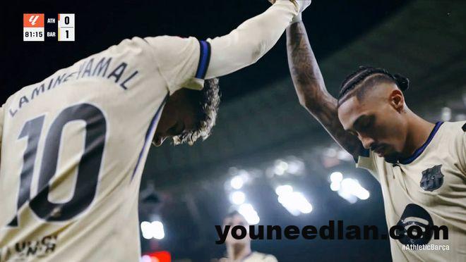 莱万、拉菲尼亚、费尔明三名主力上场,展开全面的攻势。第68分钟,佩德里长传,亚马尔拿球晃过防守球员,直接兜射远角,击中立柱内侧弹进球门,1:0!巴萨终于打破僵局。毕尔巴鄂竞技利用最后的时间,展开全面的反击,两个边路不断的插上,制造了数次攻门的机会,只可惜临门一脚欠缺一些运气,最终全场比赛结束,巴塞罗那一球拿下对手。