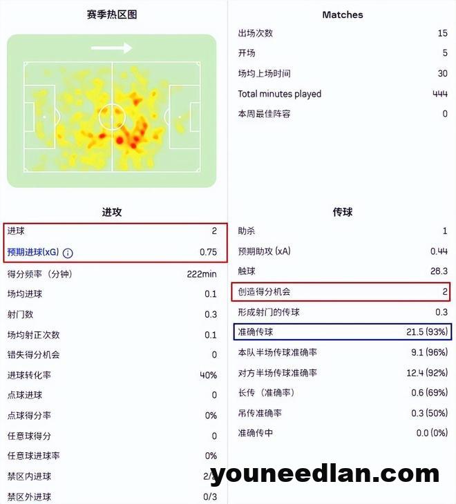 要知道他的预期进球才0.75,不得不说,贝尔纳尔在门前是真的有点东西。