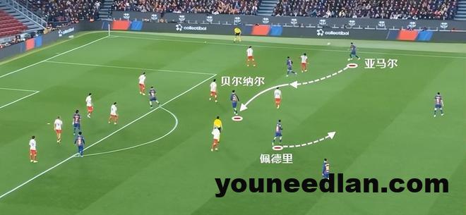 尤其是亚马尔持球从边路内切时,当佩德里向外线走,对方注意力自然会被带走,于是前顶到禁区前的贝尔纳尔就有了用武之地。
