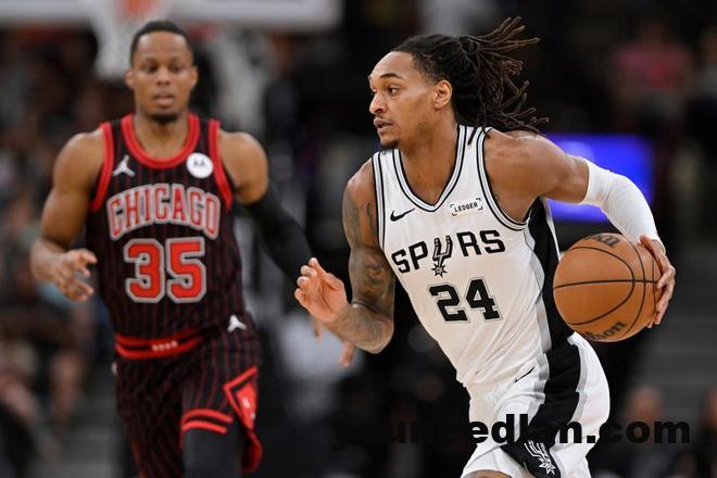 马刺过去8场豪取8连胜,公牛过去3场遭遇3连败,本赛季首次交锋马刺客场121-117战胜公牛。本场马刺缺少加西亚,公牛缺少西蒙斯、麦克朗、科林斯等多位球员。首节开局马刺4-8落后,马刺连得4分追平,双方缠斗至马刺10-12落后,马刺连得5分反超3分。公牛也连得5分,文班亚马引领一波7-0攻势夺回领先,公牛也连得7分再度反超,马刺打出7-3攻势,首节结束马刺29-28领先公牛。首节公牛22中11,其中三分10中5;马刺30中13,其中三分8中2,文班亚马9中5得到10+6+1帽。