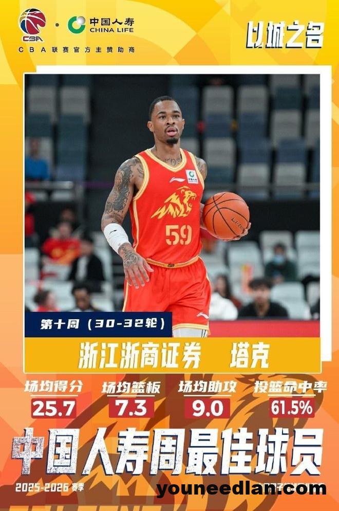 至于广厦在孙铭徽与布朗持续缺席情况下,另一位外援塔克本周出战3场,率队取得3战全胜战绩。塔克场均出场31分钟,能够轰下25.7分、7.3篮板、9助攻的全面数据,投篮命中率61.5%。在对阵天津的比赛中,塔克轰下28分、10篮板、14助攻的三双数据。