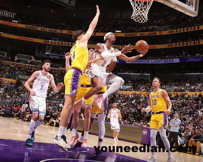 雷霆队的亚历山大上半场得到15分和6次助攻,乔得到12分;湖人队的蒂米得到11分,八村塁得到9分,肯纳德得到8分和9次助攻。
