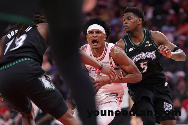 森林狼队首发阵容:迪文琴佐、爱德华兹、麦克丹尼尔斯、安德森、贝林格