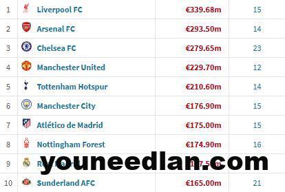 这个夏窗英超各队疯狂引援,引援支出前十有8队来自英超。
