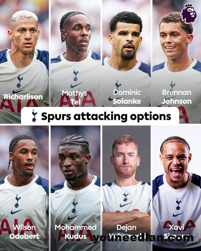 他们分别是:里沙利松、马蒂斯-特尔、索兰克、布伦南-约翰逊、奥多贝尔、库杜斯、库卢塞夫斯基,以及刚刚从莱比锡转会加盟的哈维-西蒙斯。