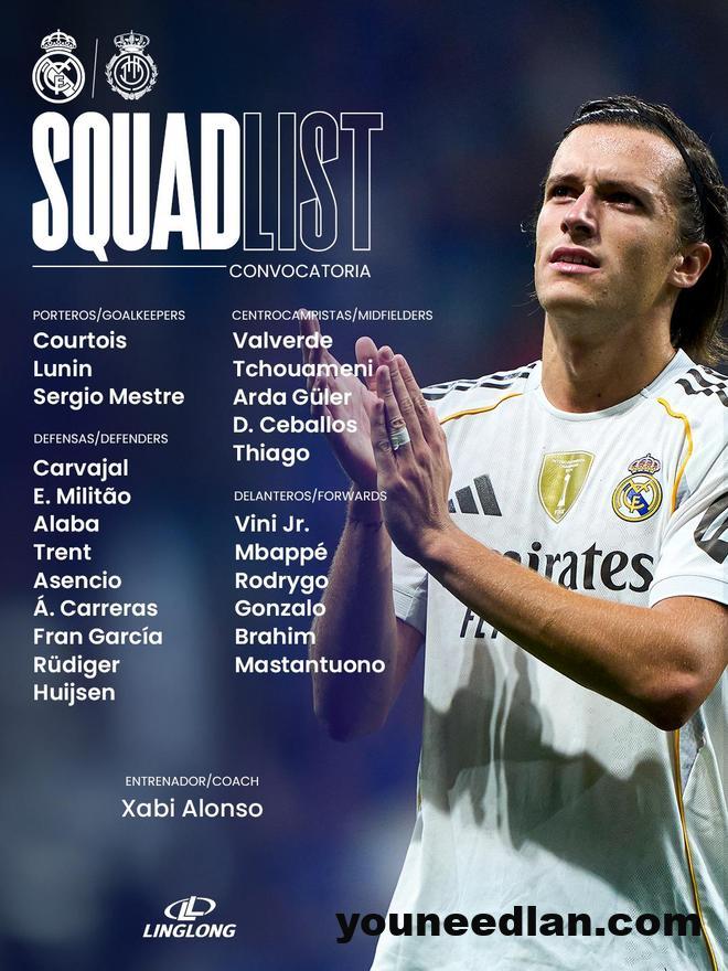 雷速体育8月30日讯 北京时间8月31日凌晨3:30,西甲联赛第3轮,皇马马德里主场迎战马略卡。皇马大名单出炉: