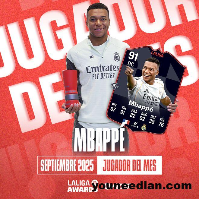 姆巴佩当选西甲联赛的9月最佳球员,该奖项由西甲联盟与EA合作颁发。这位法国前锋本月表现惊艳,已成为皇家马德里进攻端的关键人物,他帮助球队在本赛季目前进行的7场比赛中取得6场胜利。