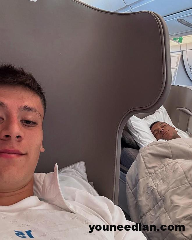 居莱尔在社交媒体发布了多张近期照片,其中一张是他在飞机上的自拍照,拍到了姆巴佩在睡觉的画面。
