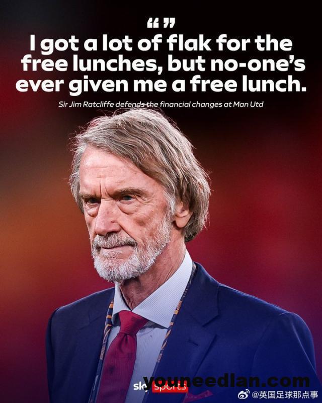拉特克利夫爵士谈到裁撤450个岗位和取消员工福利时表示:“成本实在太高了。曼联有一些非常出色的人,但也存在平庸的层面,整个结构已经臃肿不堪。“我因为取消免费午餐被批评了很多,但没人曾经请我吃过免费午餐。“不管你喜不喜欢,成绩和任何外部因素之间最大的关联就是盈利能力。现金越充裕,你就能打造越好的阵容。“所以,在我们接手的第一年里,大部分精力都花在让俱乐部走上可持续、健康的发展道路上。“在这次财务报告中,我们还没看到重组带来的全部成果。(曼联上赛季创下6.665亿英镑的营收纪录,但全年亏损3300万英镑)而且我们没有参加欧冠。“这些数字会变得更好,在我看来,曼联将成为世界上最赚钱的足球俱乐部,并在此基础上实现长期、可持续的高水平竞争力。”