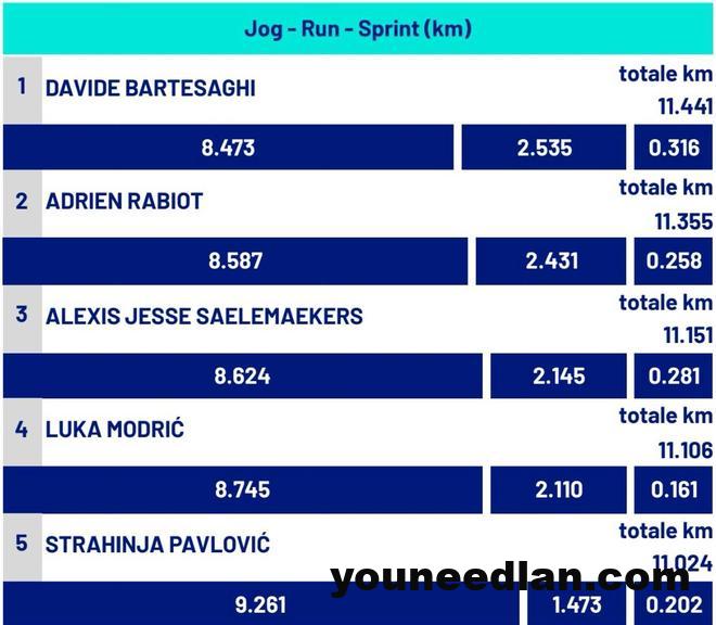 继德比战跑出11.45公里后,本场对阵蓝鹰巴尔泰萨吉再度跑出了11.44公里的队内最长距离,奔跑时的平均速度达到19.7 km/h,仅次于莱奥排名第2。