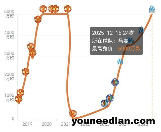 让我们把时间拉回到那个巅峰起点,2020年10月,当同龄人可能在为大学课程焦虑的年纪,19岁的格林伍德个人身价就已达到5000万欧元。