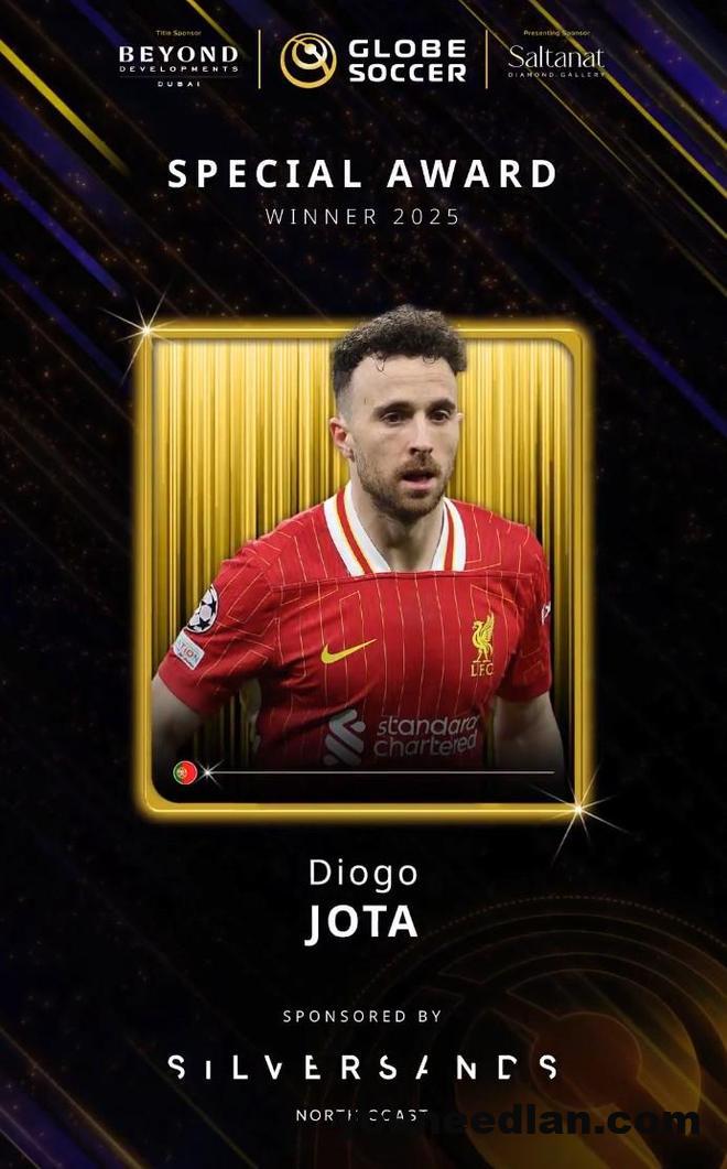 北京时间12月29日,环球足球奖官方宣布,已故的葡萄牙和利物浦球星迪奥戈-若塔获得他们评出的2025年特别奖。