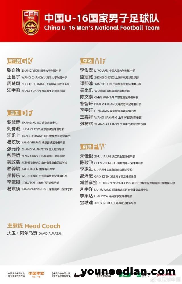 1月7日,U16国足公布最新一期集训名单,朴智轩、李佑安在列。球队将于1月12日至2月8日在福建省漳州市组织集训,以备战2027年U17亚洲杯。