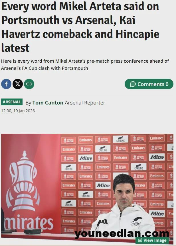 阿尔特塔出席了赛前新闻发布会,我们来看看阿森纳主帅的发言。