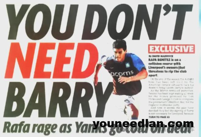 于是,贝尼特斯向当时的美国老板(吉列和希克斯)申请增加预算,他说巴里是多面手,不但能踢中场,还能踢左后卫,但美国老板说“我们已经花了不少钱(700万镑)签左后卫多塞纳了”。