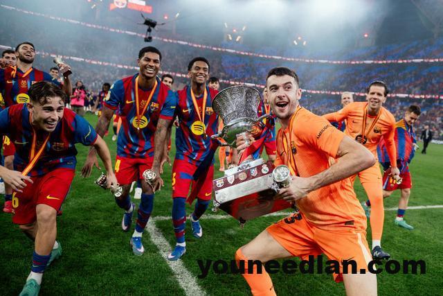在西班牙超级杯决赛中,巴萨凭借拉菲尼亚的梅开二度与莱万多夫斯基的进球,成功捧起冠军奖杯。