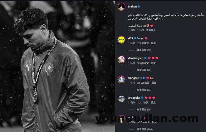 非洲杯决赛罚失关键点球后,卜拉欣-迪亚斯在社交媒体公开道歉,表示承担全部责任。多位皇马队友在其评论区留言送上爱心符号。