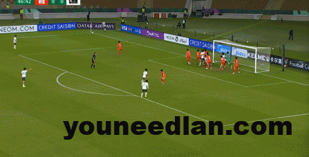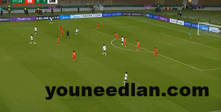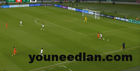 这次进攻被大脚解围后,越南队球员再次出现了防守高球时的失误,让向余望完成了带球向前和起脚攻门: