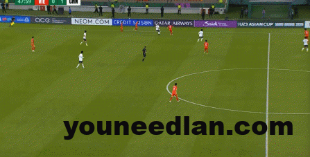 我们并不知道球队是否真的有这样的计划,但我们知道的是,下半场一回来,U23国家队便从边路坚决起球,从而制造了角球机会: