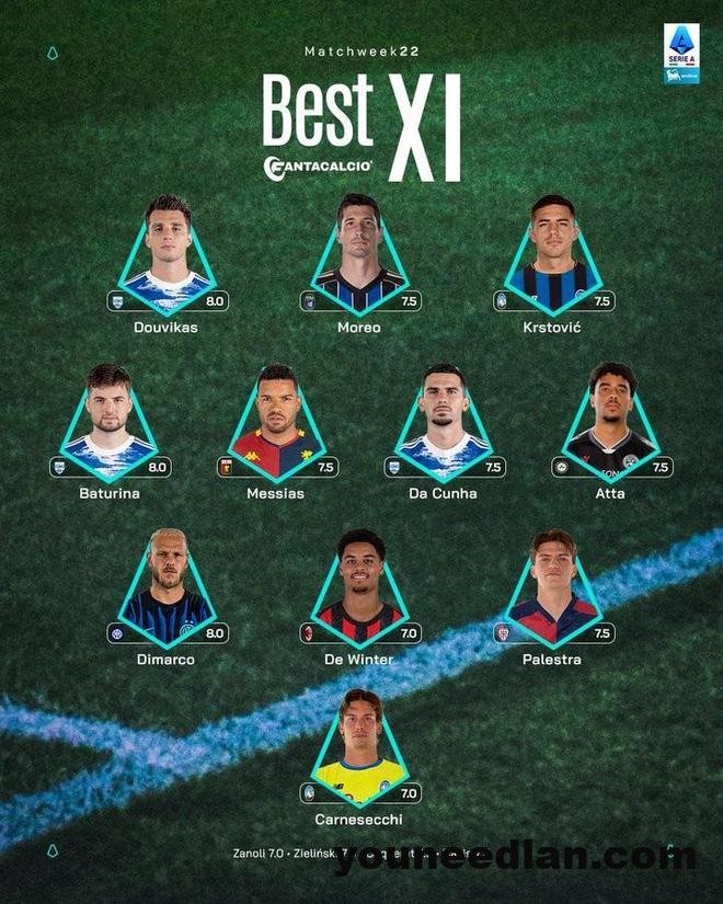 意甲第22轮最佳阵容