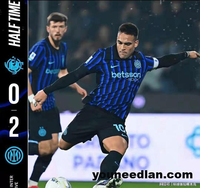 比赛伊始,坐镇主场的克雷莫内塞并未因对手强大而畏缩,反而展现出了积极的主场气势,试图通过高位逼抢来打乱国米的部署。然而,经验丰富的国际米兰很快控制了比赛的中场节奏,耐心寻找着撕破对手防线的机会。上半场的比赛完全进入了蓝黑军团的进攻时间。率先打破僵局的是国米的锋线核心劳塔罗,他在进攻端展现出了极高的跑位智慧。在一次精心设计的边路进攻中,左后卫迪马尔科在边路送出一记落点精准的传中球,埋伏在禁区内的劳塔罗力压防守后卫,以一记势大力沉的头球攻门洞穿了对方门将的十指关。这粒进球不仅帮助国米取得了1-0的领先优势,也极大地稳定了球队的军心。