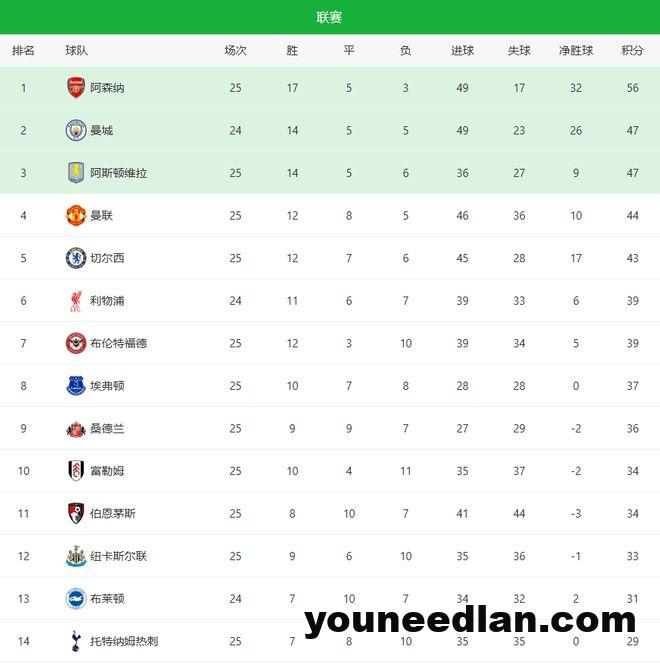 北京时间2月8日凌晨,英超第25轮如期进行,排在积分榜前五的多家豪门联手出击,领头羊阿森纳主场3-0桑德兰,以9分的优势领跑联赛;切尔西客场3-1副班长狼队,帕尔默半场上演帽子戏法,成为队史第一人;维拉大爆冷门客场0-1不敌伯恩茅斯队;曼联主场2-0完胜热刺,卡里克带队豪取4连胜,稳居积分榜第四;其他比赛,伯恩利主场0-2不敌西汉姆联;埃弗顿客场2-1击败富勒姆;纽卡斯尔联主场2-3输给了布伦特福德,真的是几家欢喜几家愁啊!
