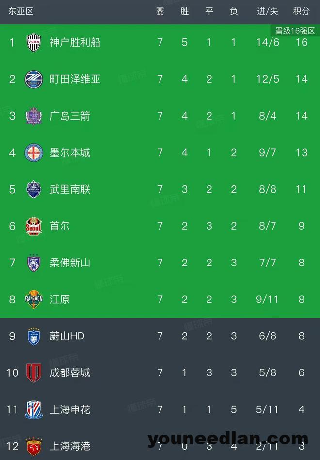 北京时间2月11日,亚冠精英联赛小组赛已经进行到了第7轮,全部比赛已经结束,我们看看最新的积分榜变动!