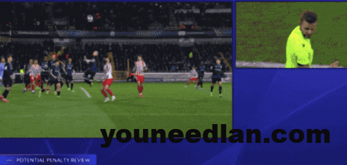 上半场第8分钟,阿金·塞防守过程中不慎手球,裁判观看VAR后,判罚点球。阿尔瓦雷斯操刀,一蹴而就。