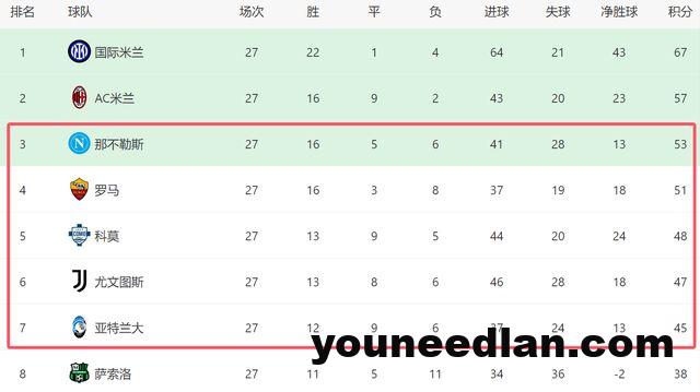 在这一夜,除了罗马和尤文战平之外,亚特兰大也没能拿到3分,他们在客场1-2输给了萨索洛,无缘取得4连胜。由于意甲3强连续不胜,争四的格局也更加混乱。截至目前,从第三的那不勒斯,到第七的亚特兰大,这5支球队就差了8分,他们当中最后很可能只有2队能拿到欧冠席位。尽管那不勒斯和罗马现在有积分优势,但是身后的对手都对前四虎视眈眈,在最后的11轮比赛中,还有很大的变数。