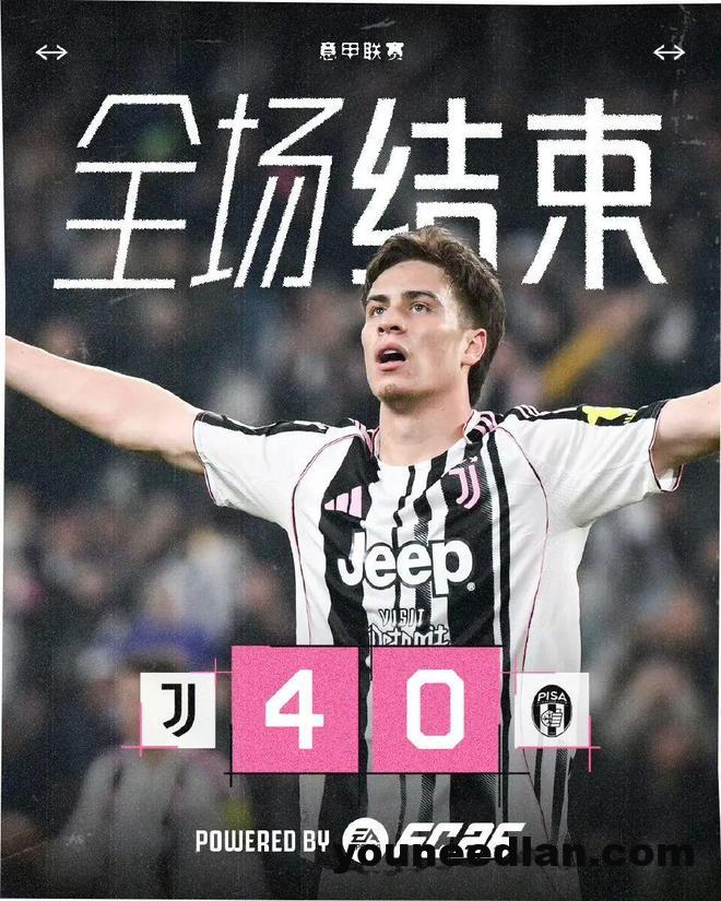 北京时间3月8日凌晨3点45分,尤文图斯主场迎战联赛“副班长”比萨。上半场比赛,比萨球员莫雷奥头球被佩林神勇化解,双方互交白卷。下半场比赛,伊尔迪兹传中,坎比亚索顶空门得手先下一城,图拉姆补射建功,伊尔迪兹破门,博加过掉门将推射打进一球。最终,尤文图斯4比0大胜比萨,距离身前的罗马只有1分之差。